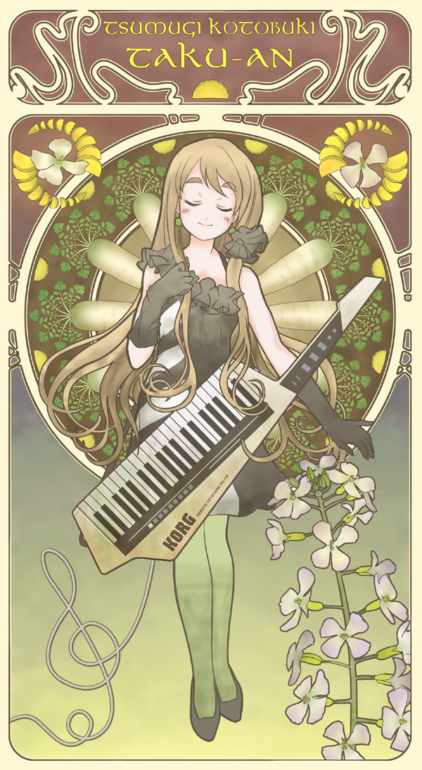 00s1girlart nouveaublonde haircableclosed eyesfemale focusflowerfull bodyglovesinstrumentkeytarlong hairpantyhosesolosynthesizertreble clef