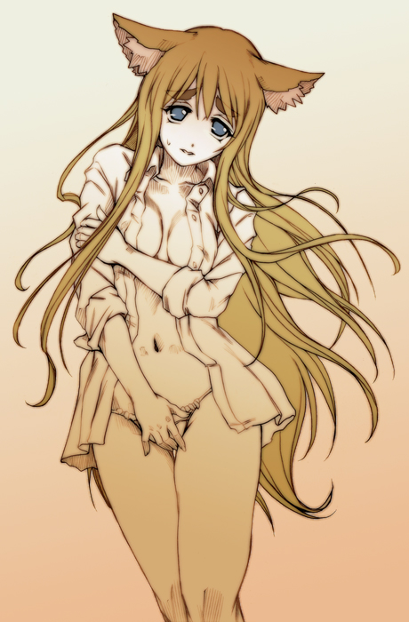 haruyama kazunori, momozono love, fresh precure!, precure, 00s, 1girl, blonde hair, brown hair, eyelashes, ghost, hitaikakushi, necktie, panties, red eyes, school uniform, see-through clothes, triangular headpiece, twintails, underwear, upskirt