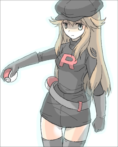 1girlalternate costumebeltblack dressblack thighhighsbreastsbrown hairclothes writingcosplaycowboy shotdressfemale focushatholdingholding poke balllong hairmedium breastsminiskirtnewsboy cappencil skirtpoke ballpoke ball (basic)serioussidelockssimple backgroundskirtsolostandingteam rocketteam rocket (cosplay)team rocket uniformthighhighsturtleneckwaist poke ballwhite backgroundzettai ryouiki