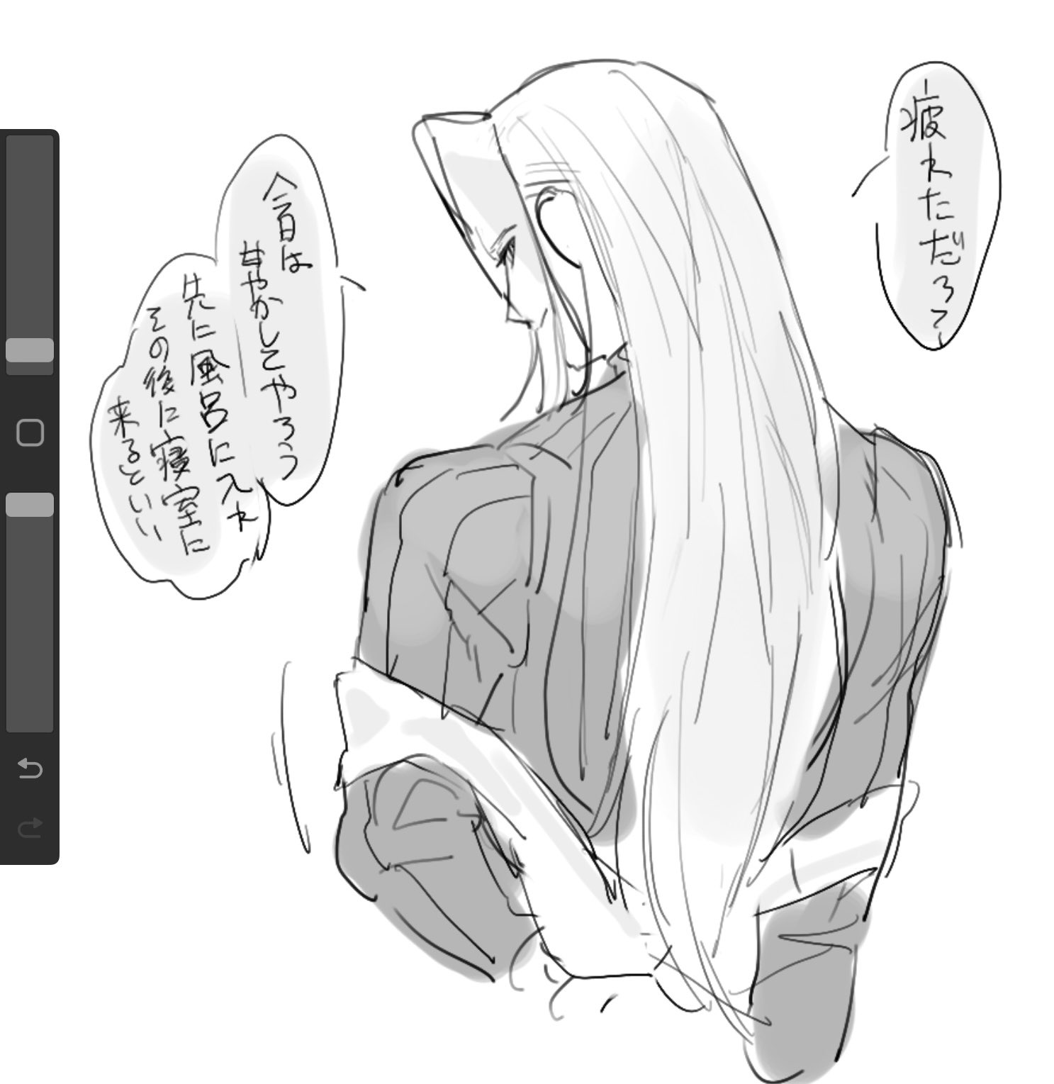 1boyalternate costumeapronart program in framecropped torsolight smilelong hairlooking at viewerlooking backmale focusmonochromeoff shoulderribbed sweatersketchsolospeech bubblesweaterturtleneckturtleneck sweaterundressingupper body