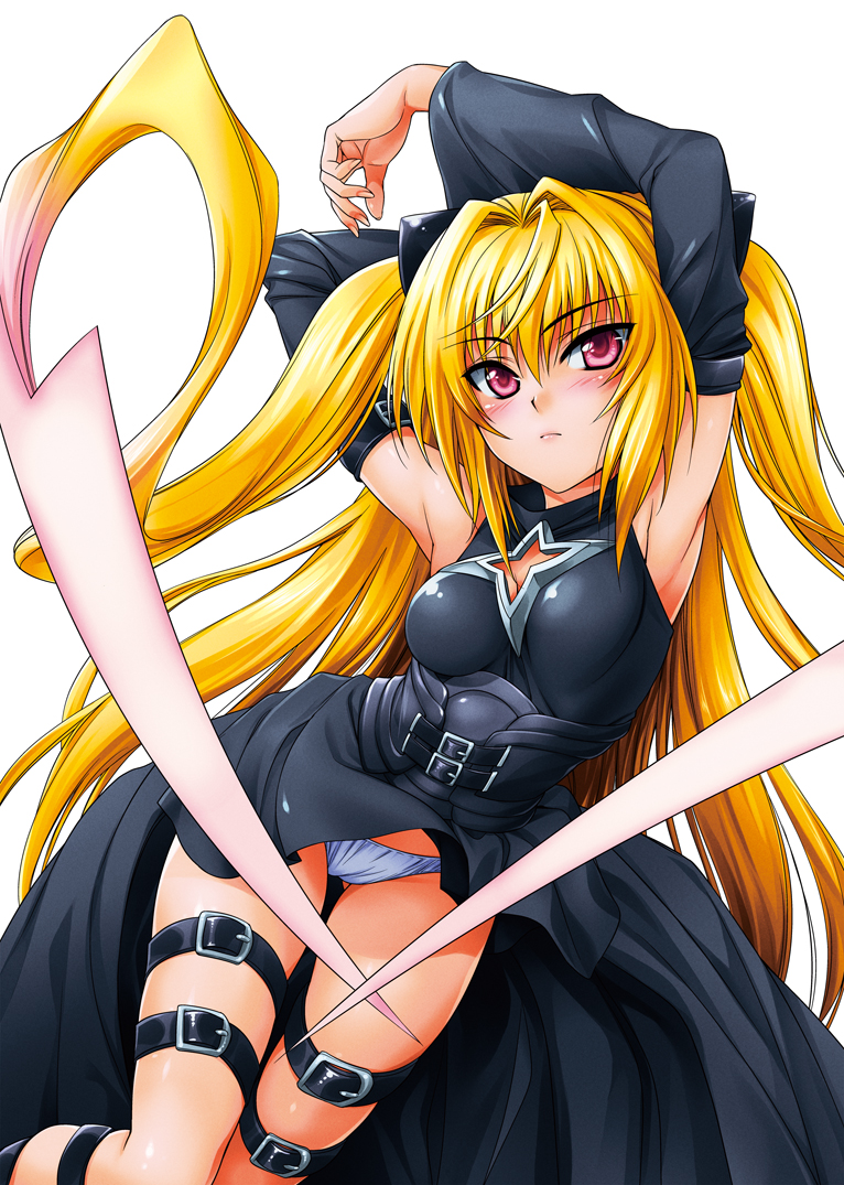 00s1girlarmpitsarms upblonde hairblushdetached sleevesfemale focuslong hairpantiesprehensile hairred eyessolothigh strapunderwearvery long hair