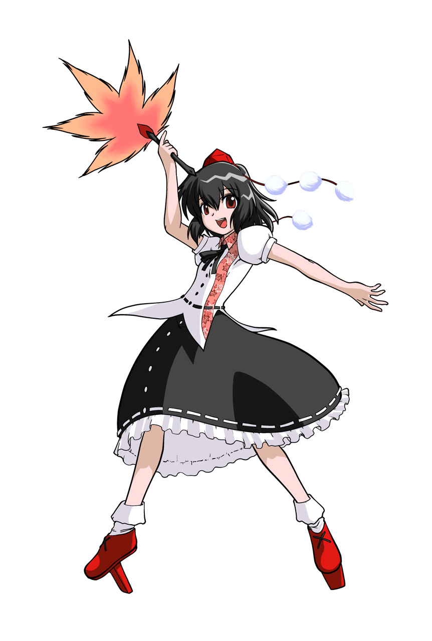1girlblack hairfemale focusgetahand fanhatlooking at vieweropen mouthred eyesshort hairsolotengu-getatokin hat