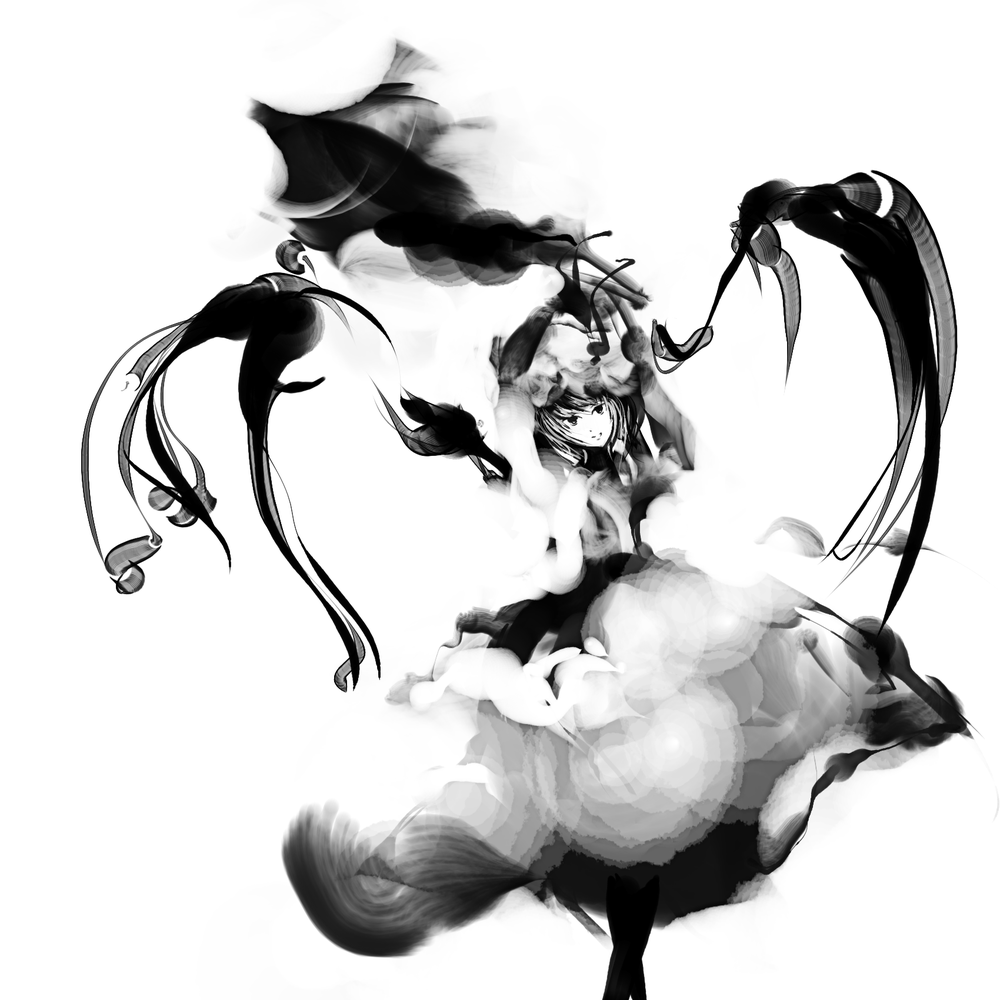 1girlbat wingsfemale focusfull bodygreyscalehatlooking at viewermob capmonochromeshort hairsolovampirewhite backgroundwings