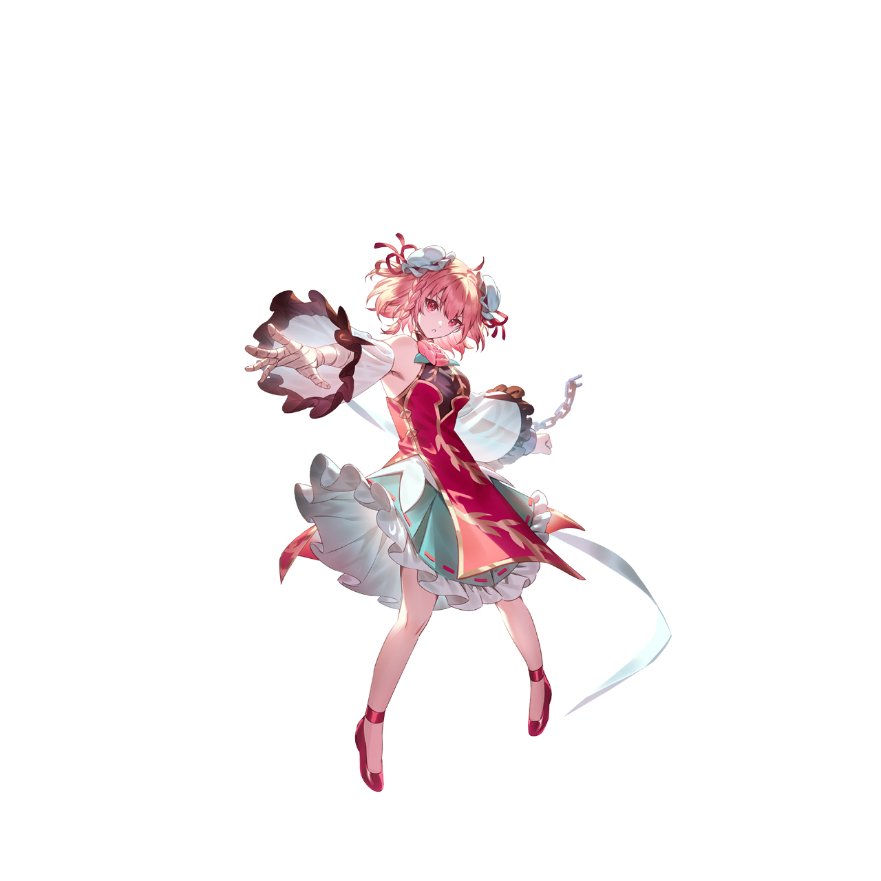 1girladapted costumealternate hairstylebandaged armbandagesbare shouldersbraidbreastsbrokenbroken chainbun coverchaindetached sleevesdouble bunflowerfrilled skirtfrillsfull bodygreen skirthair between eyeshair bunpetalspink eyespink flowerpink hairred shoesribbon trimribbon-trimmed skirtsee-through clothessee-through sleevesshoesshort hairside braidsingle braidskirtsolotransparent backgroundwhite sleeveswide sleeves