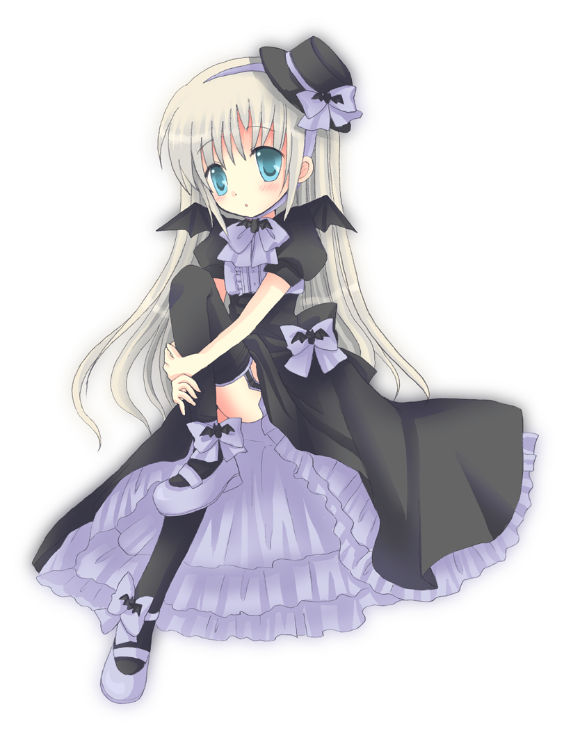 1girlankle ribbonbat (animal)female focusfrilled thigh strapgarter beltgothic lolitagreen eyeshatleg ribbonlingerielolita fashionlong hairmini hatmini top hatpetticoatribbonsolothigh strapthighhighstop hatunderwear