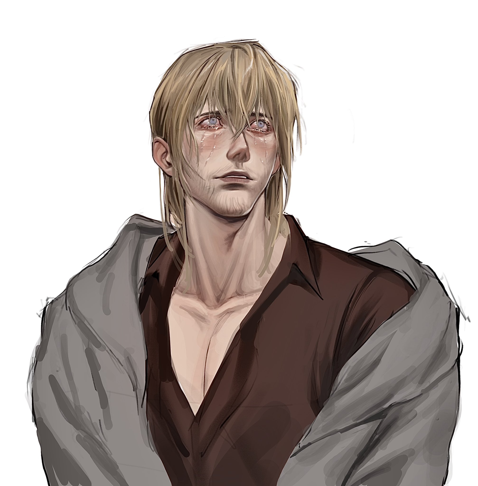 1boyaegyo salbeard stubbleblonde hairbloodshot eyesblue eyesbrown shirtcollared shirtcryingcrying with eyes openfacial hairgrey jackethair between eyesinkynarujacketlawrence oleanderlooking to the sidemale focusmedium hairparted lipspectoral cleavagepectoralsshirtsidelockssolostubbletearsupper body