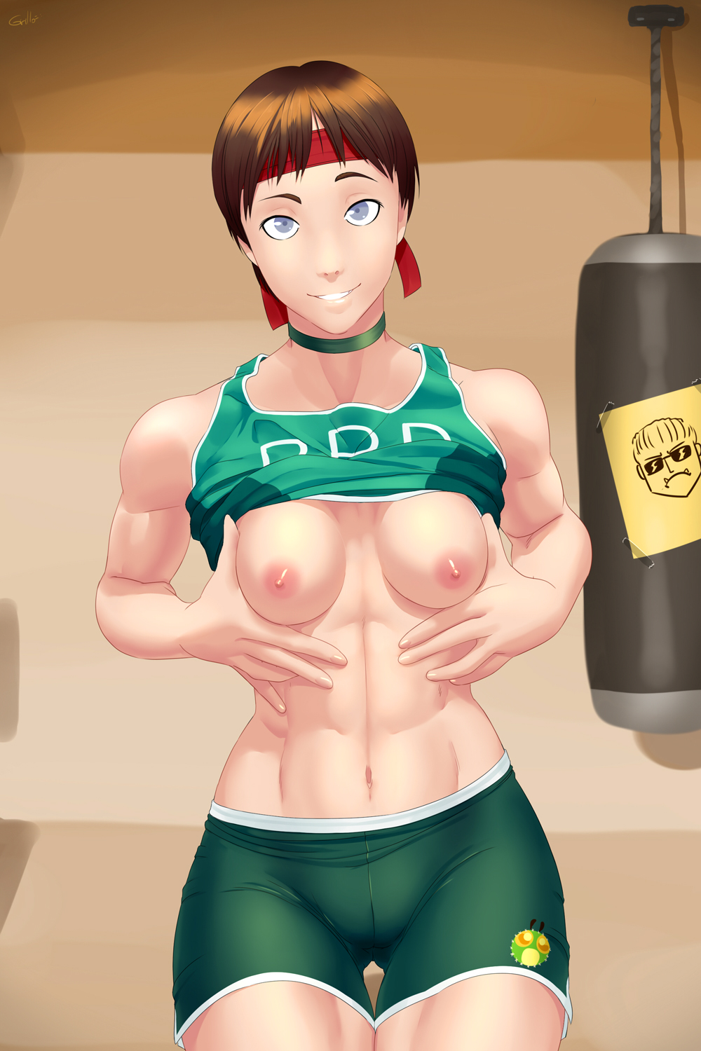 absalternate costumebike shortsbreastsbrown haircrop topfemaleFlag for Deletionheadbandlooking at viewernipplesshirt liftsmilesolotoned