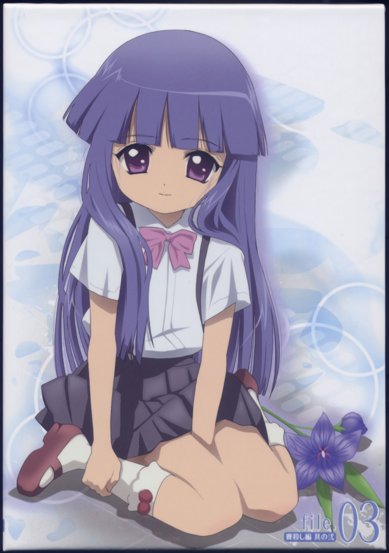 00s1girlbellflowerbetween legsblue hairblunt bangsbobby socksbowbowtiefemale focusflowerfull bodyhand between legshime cutkneelinglong hairlooking at viewermary janespink bowpleated skirtpurple eyesred shoesshoesshort sleevessittingskirtsmilesockssolosuspender skirtsuspenderswarizawhite socks