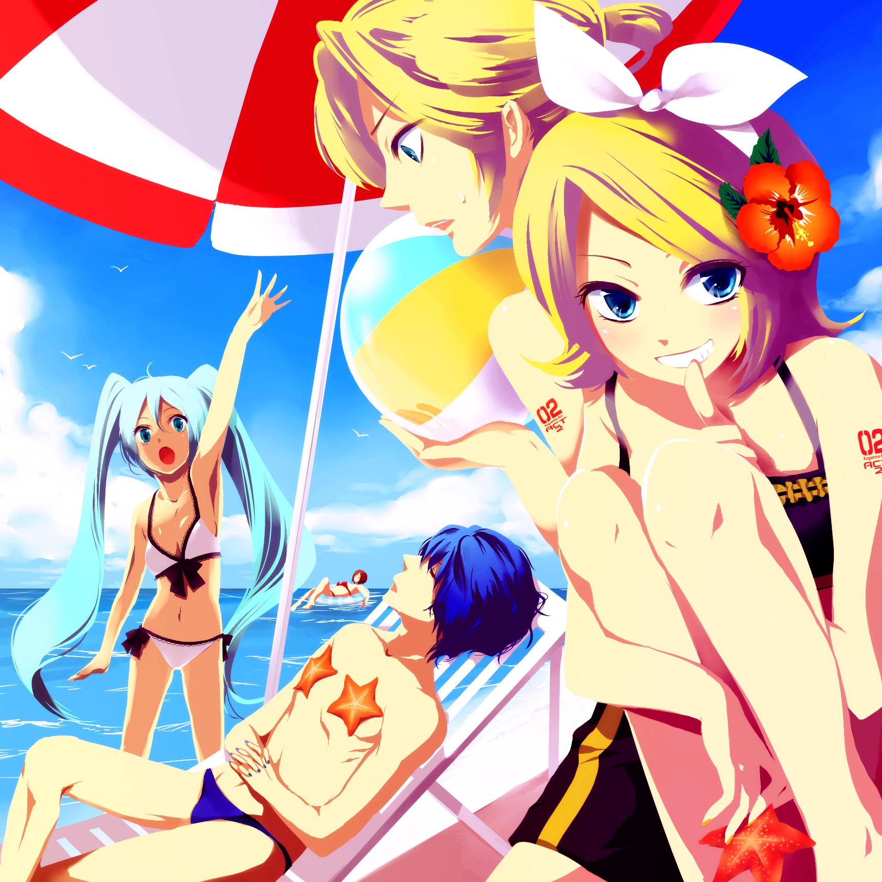 2boys3girlsballbeachbeachballbikiniblack male swimwearblack swim trunksblue male swimwearblue swim briefschairdayflowergrinhibiscuslounge chairmale swimwearmouth holdmultiple boysmultiple girlsoutdoorssleepingsmilestarfishsunbathingswim briefsswimsuitumbrella