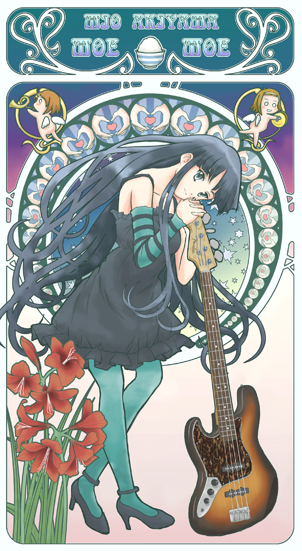 00s3girlsamaryllis (flower)angelangel wingsaqua pantyhoseart nouveaubass guitarblack eyesblack hairbowlchibicymbalsdressfingerless glovesflowerglovesguitarheartheart handsinstrumentlong hairmultiple girlspantyhoserice bowltrumpetwings