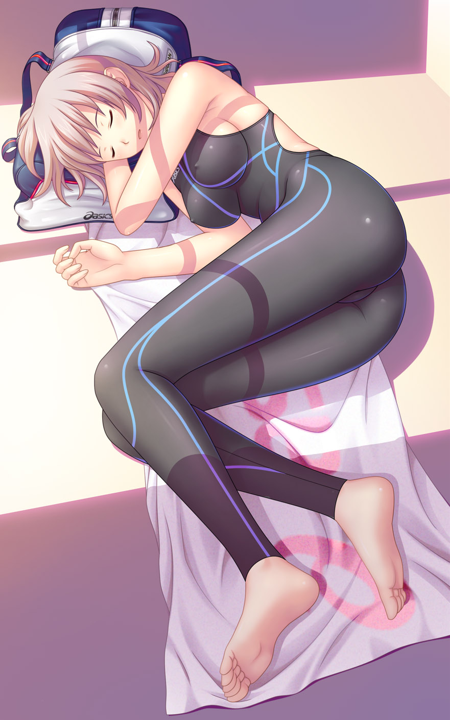 1girlarmpitsassbagbarefootbodysuitbreastsclosed eyescompetition swimsuitcovered erect nipplesdiving suitduffel bagfeetfemale focuslarge breastslegslong legslyingon sideone-piece swimsuitopen mouthpink hairshiny clothesshort hairsideboobskin tightsleepingsolessoloswimsuitthighstoestowelwetsuit