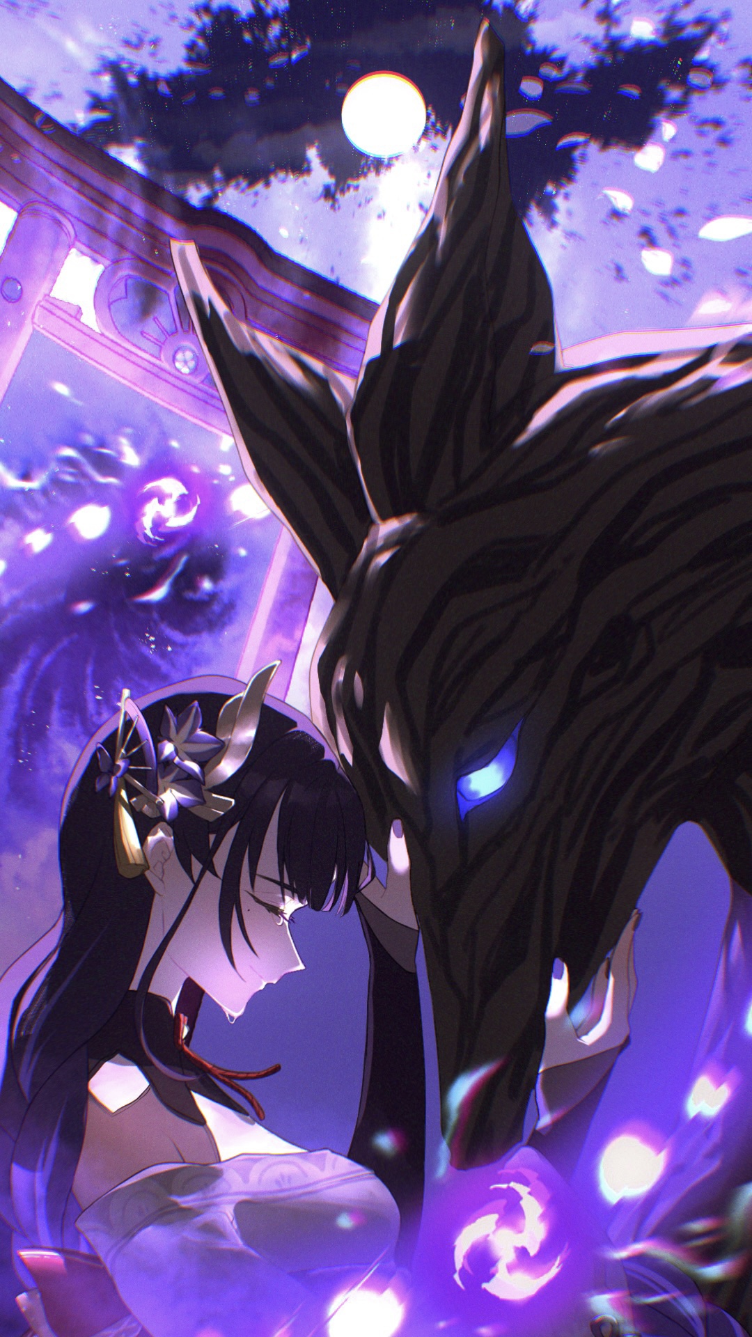 1girlarchitecturearmorblue eyesblunt bangsblurryblurry backgroundbraidbridal gauntletscherry blossomsclosed eyesclosed mouthcryingdepth of fieldeast asian architectureelectricityfalling petalsfan hair ornamentflowerflower ornamentfoxfox girlfox statuefrom sidefull moonglowingglowing eyesglowing petalshair ornamentheads togetherjapanese clotheskimonolight smilelong braidlong hairmitsudomoe (shape)molemole under eyemonster girlmoonmoonlightmulticolored hairneck ribbonnightnight skyoff shoulderoutdoorspetalspettingpowering uppurple flowerpurple kimonopurple nailsred ribbonribbonshadeshoulder armorsingle braidskystandingstar (sky)starry skystatuestreaked hairtomoe (symbol)treeupper body