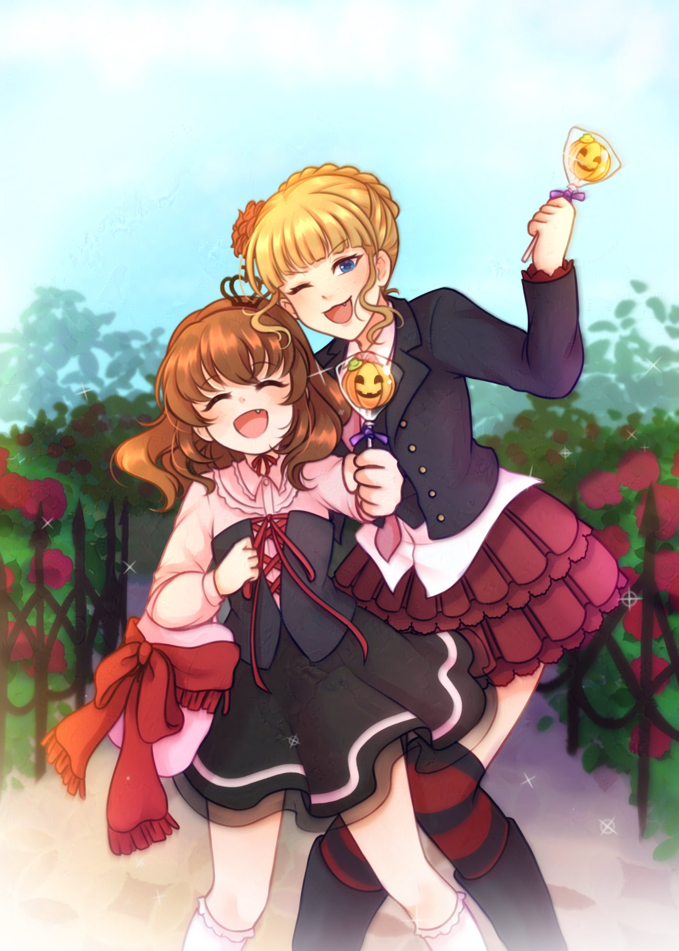 beatrice (umineko), frederica bernkastel, lambdadelta, ushiromiya battler, ushiromiya george, toradora!, umineko no naku koro ni, 2boys, 3girls, angry, beret, black hair, blonde hair, blue eyes, blue hair, brown hair, dress, glasses, hat, multiple boys, multiple girls, parody, pink dress, pink hat, purple eyes, ribbon, thighhighs, yellow eyes