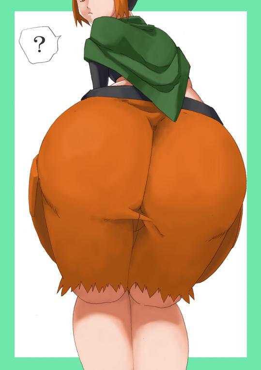 1boy1girlassass focusbent overfemale focusgym leaderhuge asslooking backorange hairshort hairshortssimple backgroundsolotorn clothestorn shorts