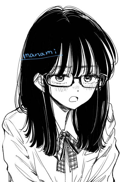 1girlartist nameblushcollared shirtglassesgreyscalehair between eyeslong hairlooking at viewermonochromeneck ribbonopen mouthplaid ribbonribbonschool uniformshirtsignaturesimple backgroundsoloupper bodywhite background