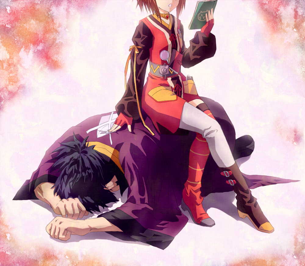 00s1boy1girlblack hairbookbootsbrown hairchairchokergloveshuman furniturepantyhoseponytailshort hairsingle leg pantyhose
