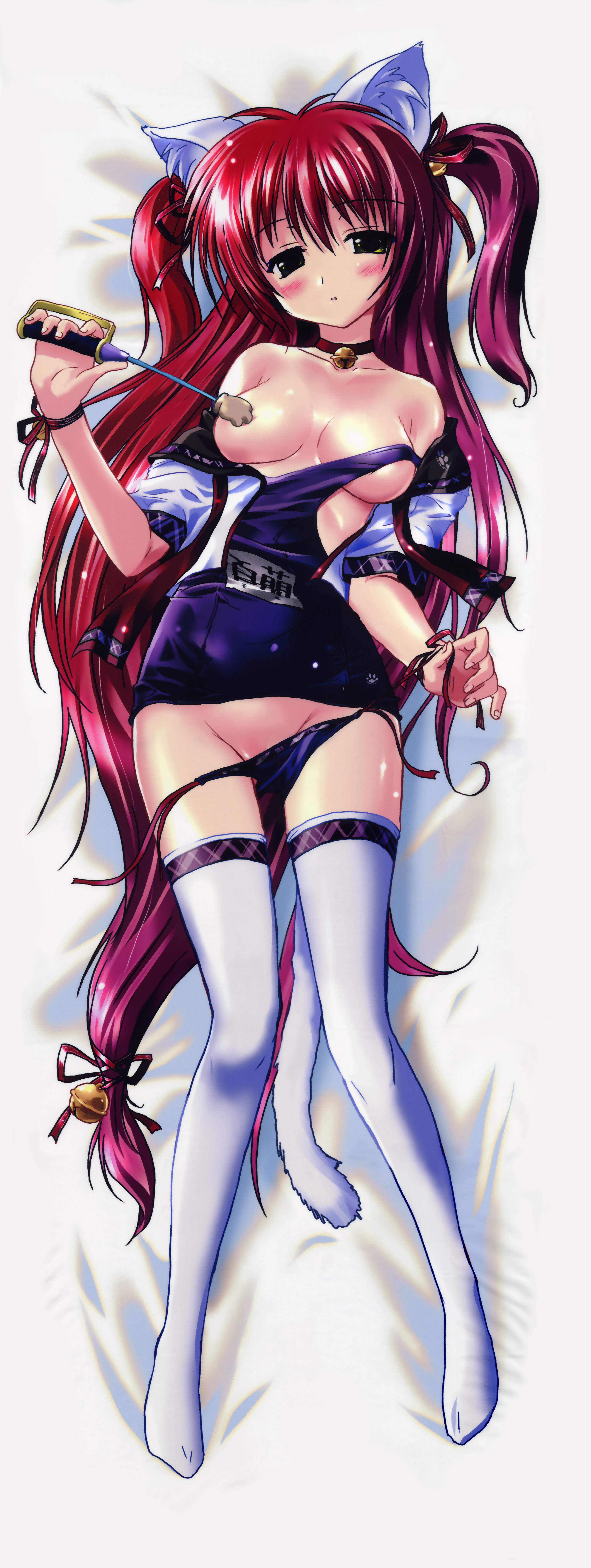 pop, blue legwear, highres, 1girl, :d, blonde hair, blush, body blush, dress, female focus, long hair, open mouth, outstretched arms, shoes, smile, solo, spread arms, twintails, white dress, white shoes