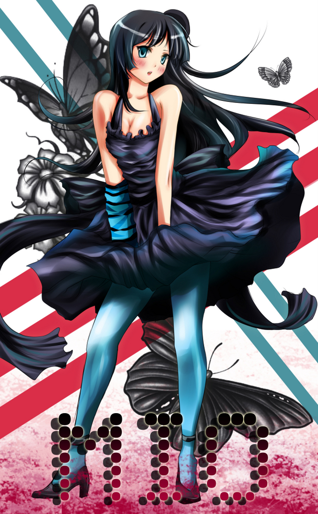 00s1girlaqua pantyhoseblack hairblue eyesblue pantyhosebugbutterflydressfemale focusfingerless glovesflowergloveshatinsectlong hairmini hatmini top hatpantyhosesolotop hat