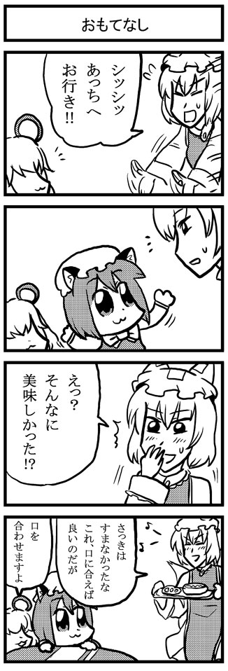 :33girls4komaanimal earsanimal hatcat earscat girlclosed eyescomicfemale focusgreyscalehair over eyeshatholdingholding traylong sleevesmob capmonochromemouse earsmultiple girlsmusical noteopen mouthquavershort hairspeech bubblespoken musical notesweatdroptabletraywhite backgroundwide sleeves