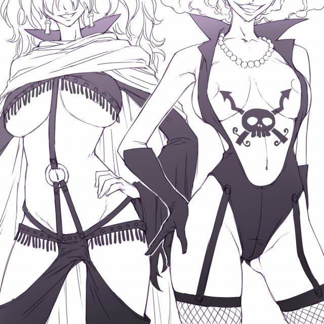 2girlsbreastsfishnetsfringe trimglovesgreyscalehead out of framelarge breastsmonochromemultiple girlsnipplesrevealing clothesskulltattoothighhighsunderboob