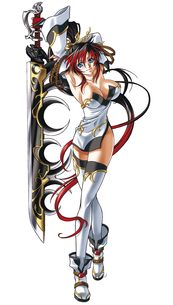 1girlarmpitsarms upbare shouldersblack hairblue eyesbootsbreastscleavagecrossed legsdetached sleevesdressfemale focusfingerless glovesfingernailsfull bodygloveshair ornamenthead tilthuge breastshuge weaponlarge breastslegslong fingernailslong hairlong legslooking at viewermulticolored hairnail polishno brano pantiespink nailsponytailred hairropeshort dressside slitsideboobsidelockssimple backgroundsmilesolostandingstraplessstrapless dressswordthighhighsthighstwo-tone hairvery long hairwatermarkwatson crossweaponwhite thighhighswide sleeveszettai ryouiki