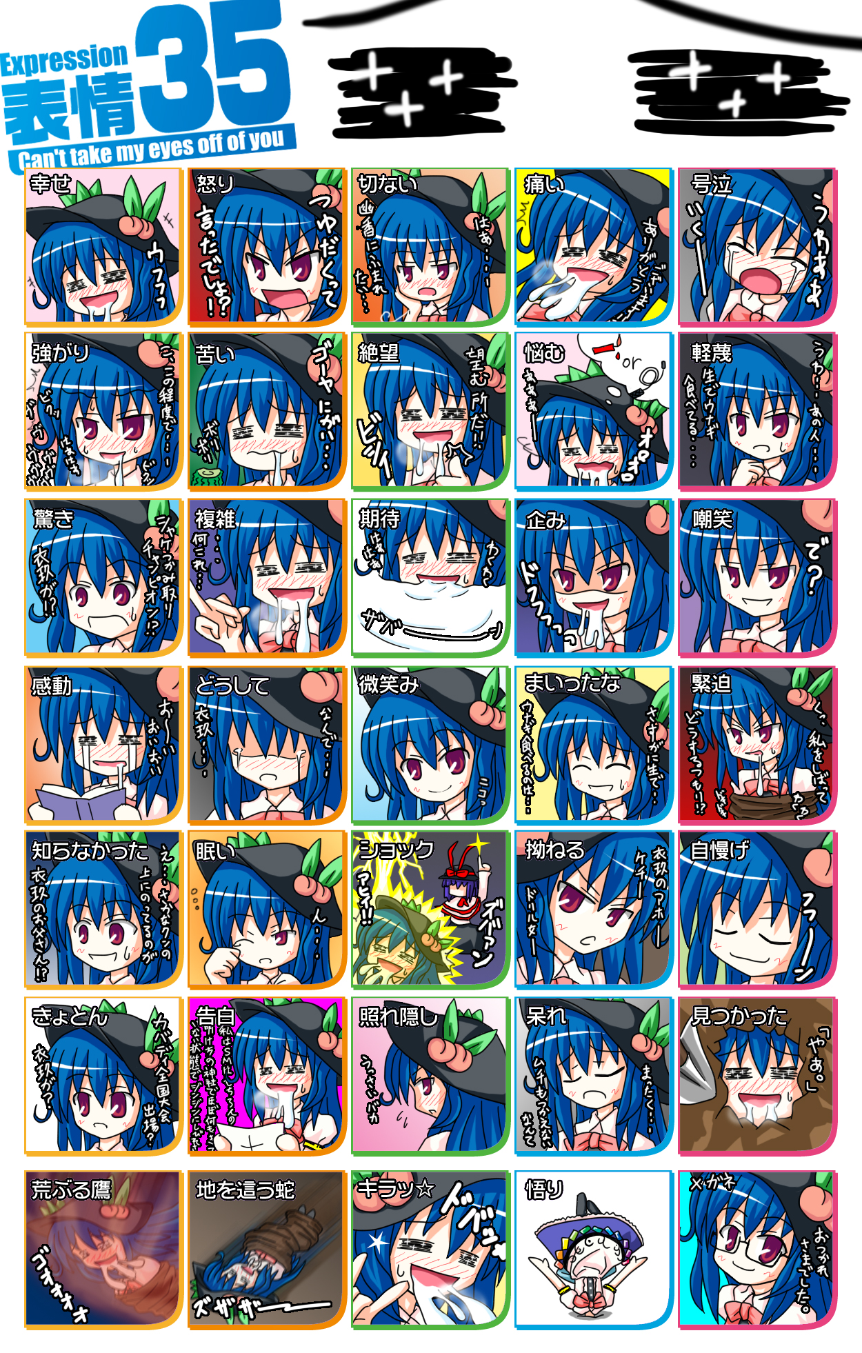 2girlsbespectacledblue hairfemale focusfoodfruitglasseshatlong hairmultiple expressionsmultiple girlspeachred eyessaliva