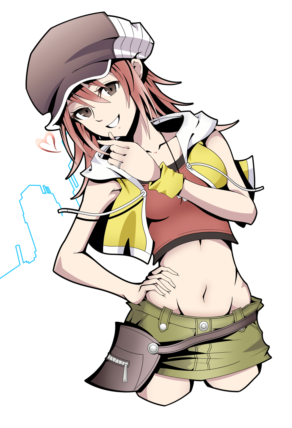 1girlbare shouldersbreastsbrown eyesbrown hatcollarbonecrop topcropped jacketcropped legsdrawstringfanny packfinger heartgreen skirtgringroinhair between eyeshand on own hiphathoodhood downhooded jacketjacketjewelrykintoki (versus0827)long hairlooking at viewermedium breastsmidriffminiskirtnavelnecklacenewsboy capopen clothesopen jacketred hairred shirtringshirtshort hairsidelocksskirtsleevelesssleeveless jacketsleeveless shirtsmilesolostandingwhite backgroundwristbandyellow jacket