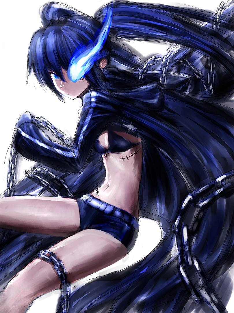10s1girlarm cannonbikinibikini top onlyblack hairblue eyesblue hairchainfemale focusglowingglowing eyesmatching hair/eyesmidriffscarsketchsoloswimsuittwintailsuneven twintailsweapon