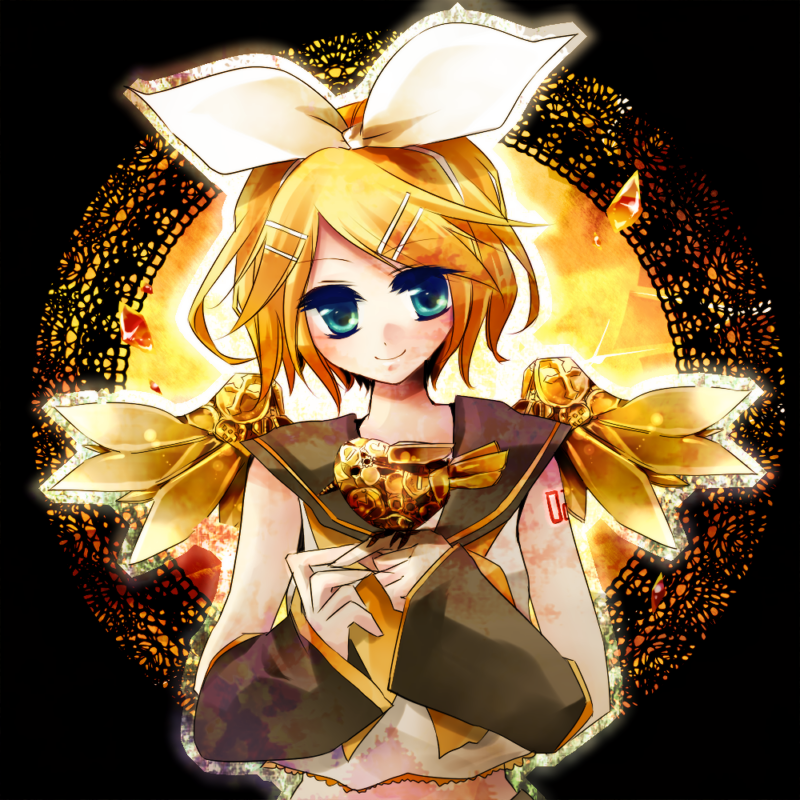 aqua eyesblonde hairdetached sleeveshair ornamenthair ribbonhairclipmechanical wingsribbonshort hairsmilesolowings