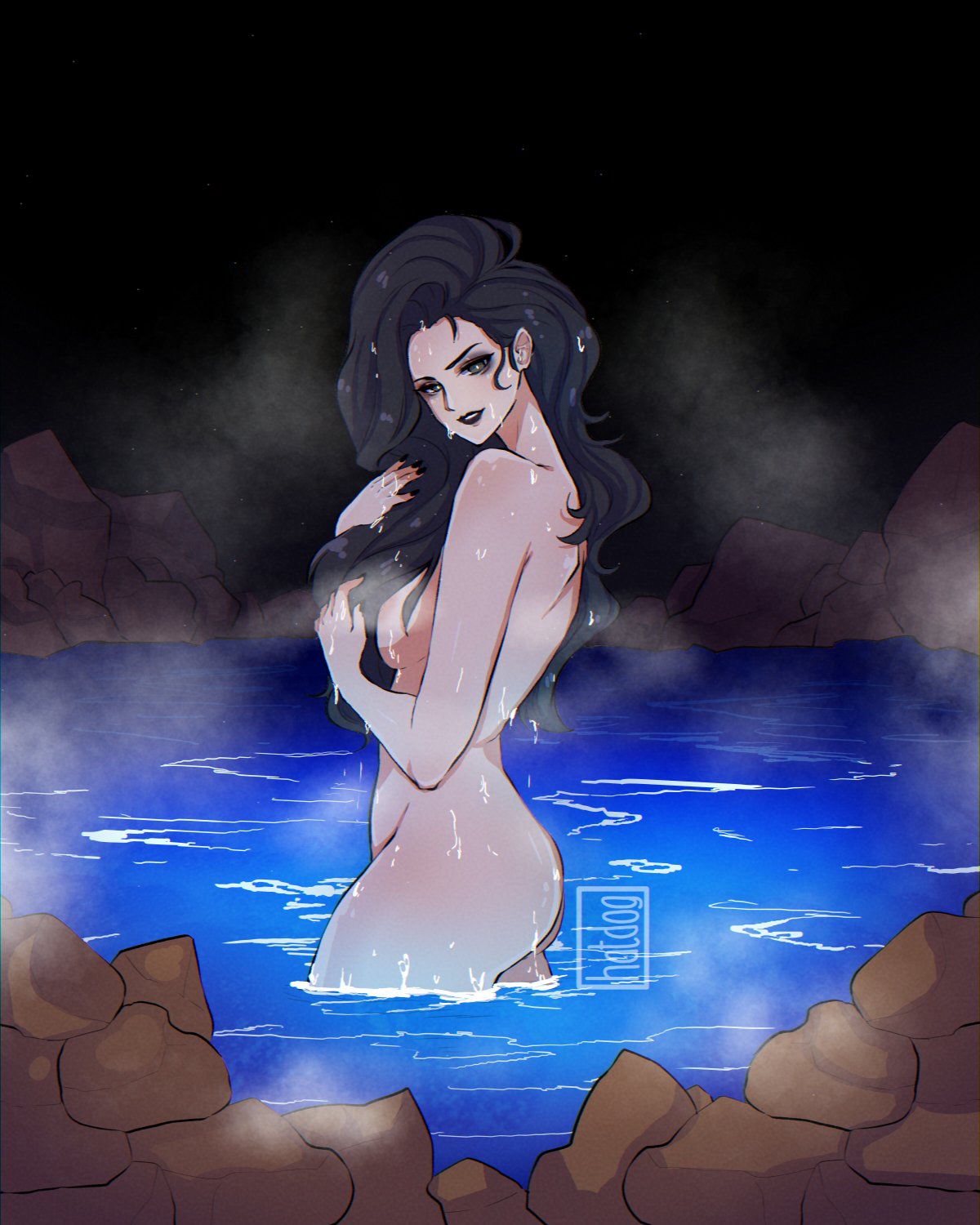 1girlartist nameassbathingblack hairbreastsbreasts outnipplesnudepartially submergedscene referencesolosolo focuswater