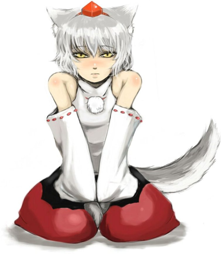 1girlanimal earsdetached sleevesfemale focusfull bodyhatshort hairsittingsolotailtokin hatwhite backgroundwhite hairwolf earswolf tailyellow eyes