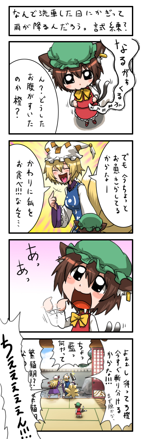 3girls4komaanimal earsanimal hatblonde hairbrown haircat earscat girlcat tailcomicearringsfemale focusfox tailhair ribbonhathat ribbonholdingholding knifejewelryknifelong hairlong sleevesmob capmultiple girlsmultiple tailspuffy short sleevespuffy sleevesribbonshoesshort hairshort sleevessingle earringsockstailtasselwide sleeves
