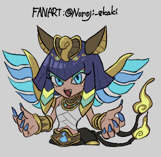 1girlancient egyptiananimal earsartist namebare shouldersblue eyesbreastscat earscentauroidchest sarashiclawsdark skindark-skinned femalefangfingernailslooking at viewermonster girlmultiple tailsnavelopen mouthsarashisimple backgroundsmall breastssolosphinxtailtaurtwo tailswhite backgroundwingsyoukai (youkai watch)