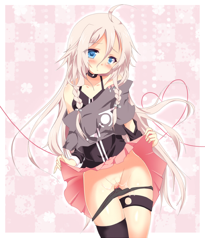 blue eyesblushcollarfemaleFlag for Deletionlong hairpantiespanty pullpink hairpussypussy juiceskirt liftsolostandinguncensoredvocaloid