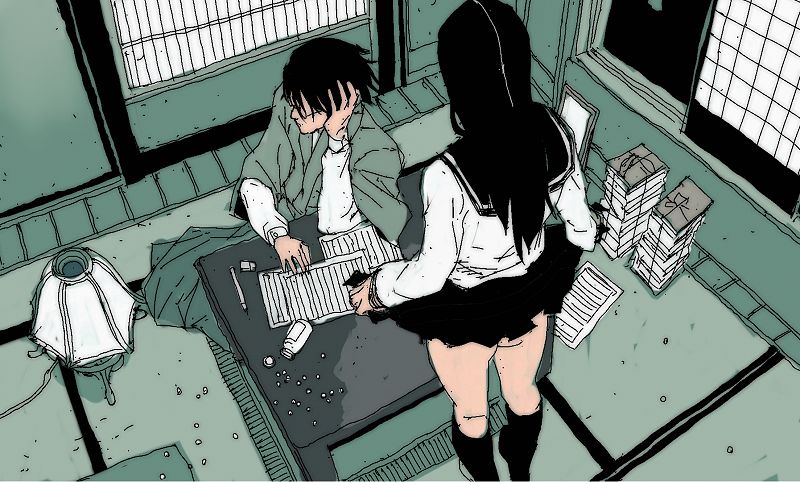 00s1boy1girlassblack hairclothes liftcompletely unamuseddrugsfrom aboveglasseskneehighslamplong hairno pantiespillschool uniformserafukuskirtskirt liftsockstableunamused