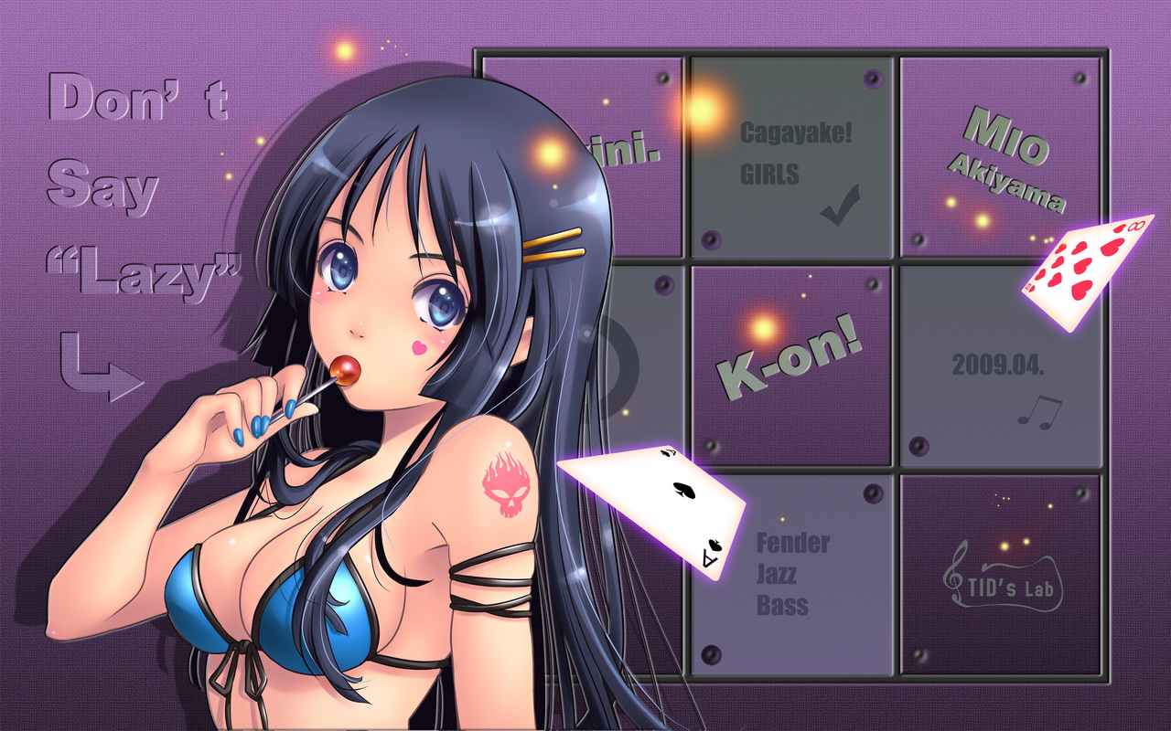 00s1girlbikinibikini top onlyblack hairblue eyesblue nailsbreastscandycardcleavagefacepaintfemale focusfoodfront-tie tophair ornamenthairclipholdingholding cardlollipoplooking at viewermedium breastsnail polishshiny skinskindentationsoloswimsuittattoo