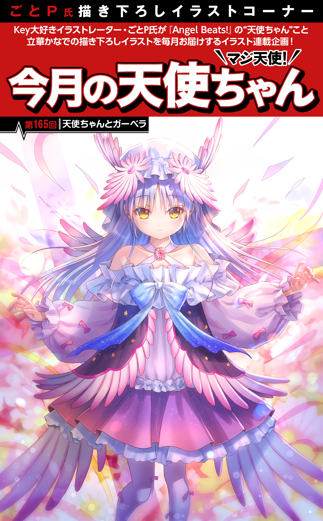 1girlalternate costumedressfeet out of frameflowerfrilled dressfrillsgerberalong hairlooking at viewerpantyhosepink dresspink flowerribbonsolowhite hairwhite pantyhosewingsyellow eyes