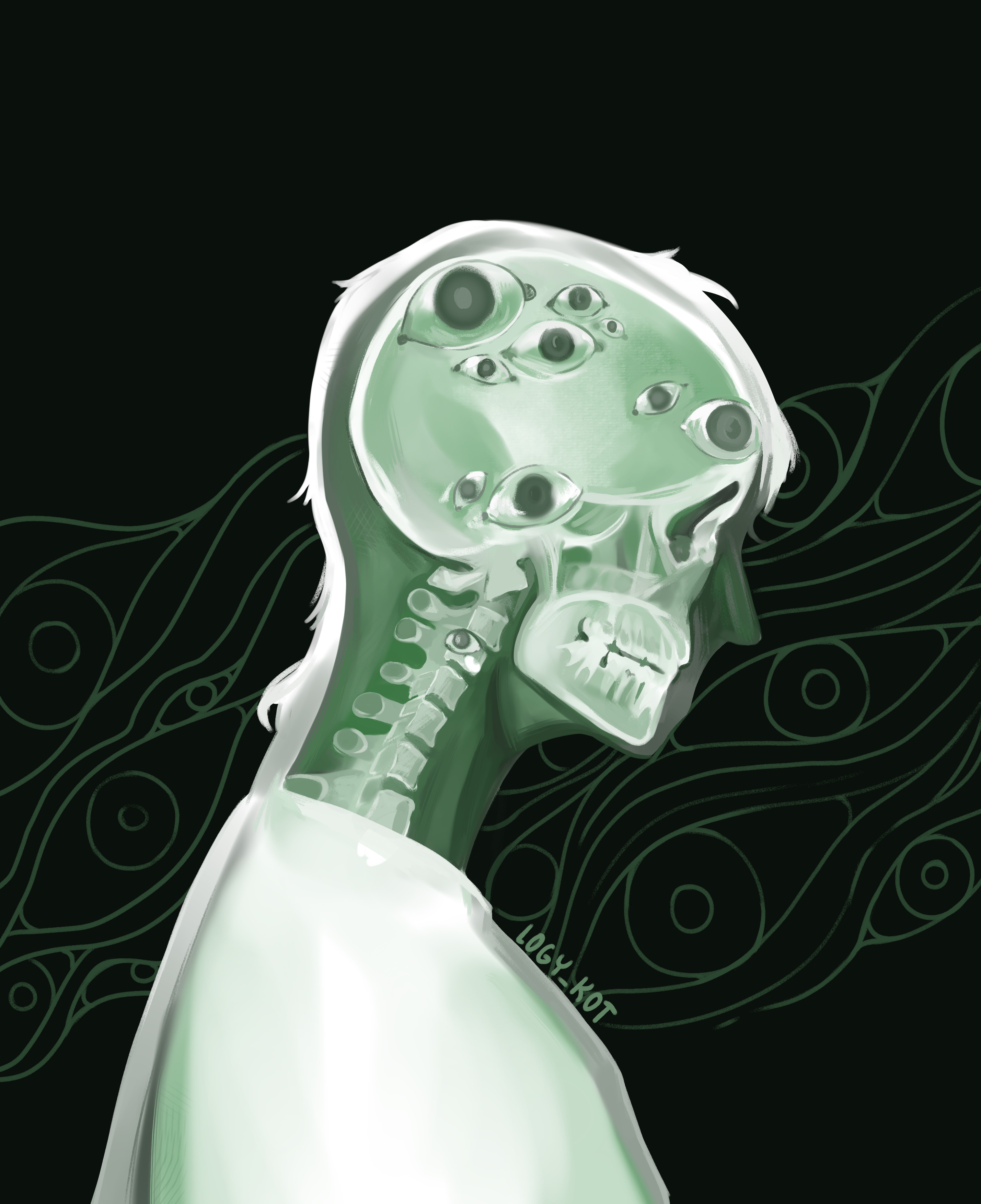 yu lan, adashino adami, mr. hood, homicipher, absurdres, chinese commentary, commentary request, highres, translation request, 1boy, 1girl, black hair, chinese text, cloak, cowboy shot, dress, english text, grey dress, hand on another's cheek, hand on another's face, hood, hood up, hooded cloak, hug, hug from behind, long hair, mixed-language text, monster boy, red eyes, tentacles, x-ray