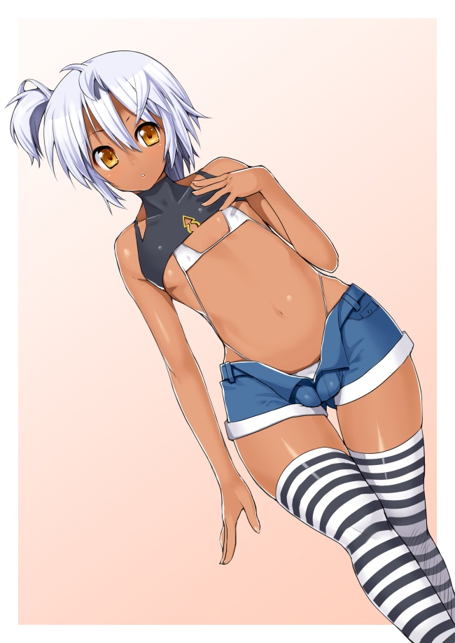 shiina you (tomoshibi), minase iori, takatsuki yayoi, idolmaster, idolmaster (classic), idolmaster 1, 00s, 2girls, :<, blush, bow, brown hair, chibi, denim, denim shorts, green eyes, hair bow, hairband, handheld game console, kneehighs, long hair, miniskirt, multiple girls, one eye closed, pantyhose, pencil skirt, playstation portable, poverty, red eyes, short hair, shorts, skirt, socks, sweat, sweatdrop, top-down bottom-up, twintails, wink
