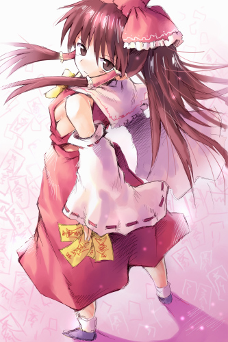 1girlbreastsbrown eyesbrown hairdetached sleevesfemale focusgradient backgroundhair ribbonjapanese clothesmikoribbonsideboobsolowhite background