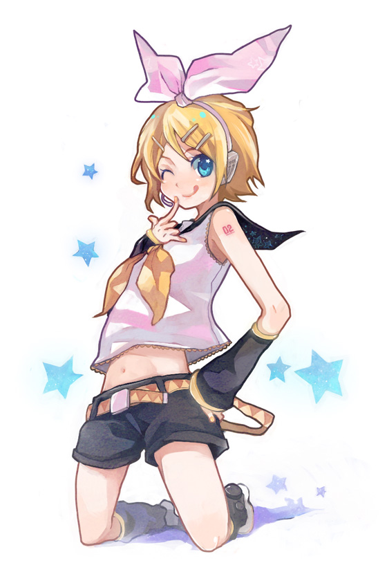:qblonde hairhair ribbonheadsetmidriffone eye closedribbonshort hairshortssolostar (symbol)tonguetongue outwink