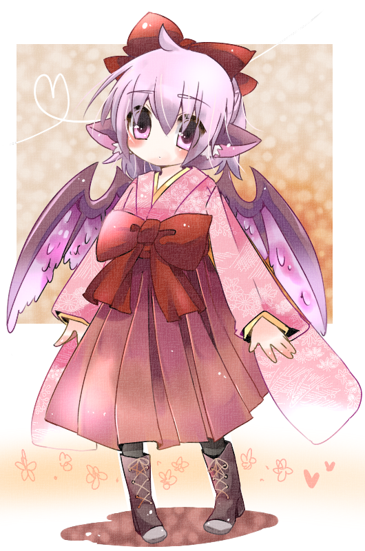 1girlanimal earsbootsfemale focushakamahakama skirtjapanese clotheskimonomeiji schoolgirl uniformpink hairred hakamaribbonskirtsolowings