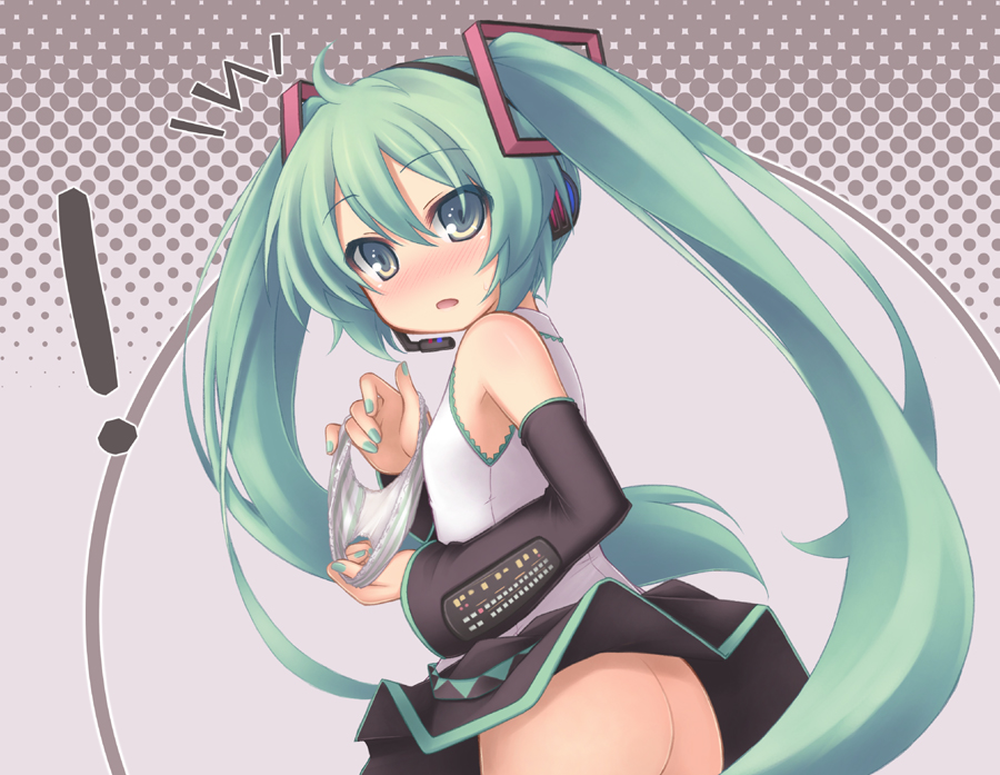 1boy1girlaqua eyesaqua hairaqua nailsassdetached sleevesfemale focushalftonehalftone backgroundheadphonesholdingholding pantiesholding underwearholding unworn clotheslong hairlooking backmicrophonenail polishno noseno pantiespantiesskirtsolostriped clothesstriped pantiessurprisedtwintailsunderwearunworn pantiesvery long hair