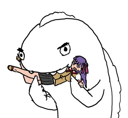 eatingfishhair ribbonlong hairparodypurple eyespurple hairribbonrole reversalsashimischool uniformsketchskirtwhat