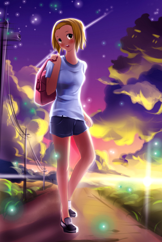 00s1girlbagbrown eyesbrown hairfemale focusfull bodyhairbandnatureoutdoorspathpower linesroadshooting starshort hairskysolosparklestar (symbol)sunsettomboy