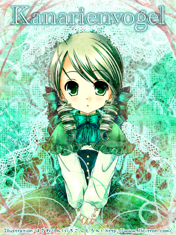 00s1girlahogealternate costumebowdressdrill hairfemale focusfrillsgreen eyesgreen hairmatching hair/eyessolotwin drillsv arms