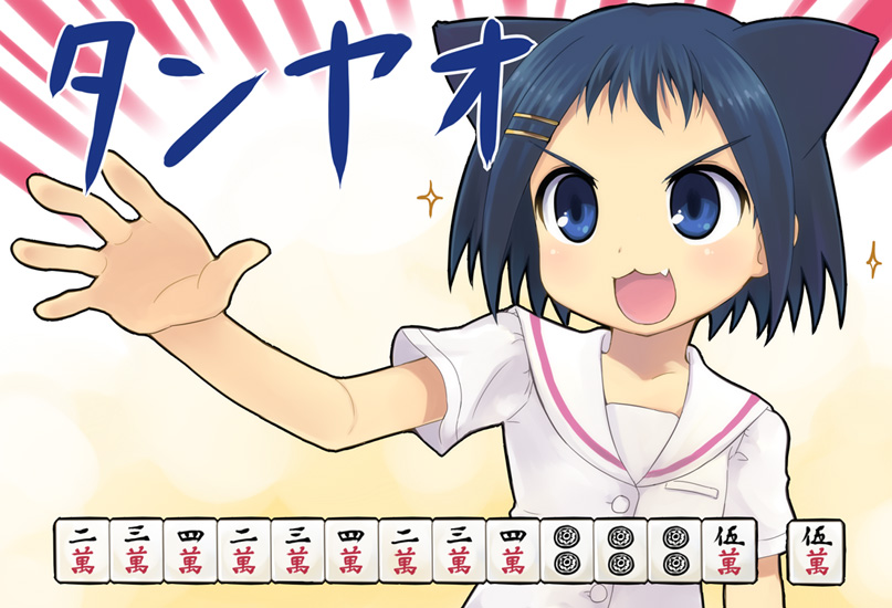 :300s1girlanimal earsblue hairboard gamecat earsdaddycool's tan'yao (meme)fangfemale focuskemonomimi modemahjongmemenetasolo