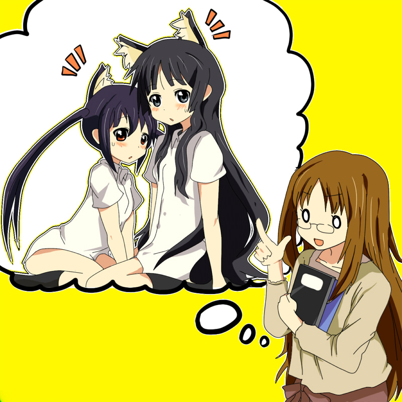 amagi kei, original, 1980s (style), absurdres, highres, non-web source, traditional media, 3girls, blue hair, blush, breasts, cunnilingus, fff threesome, group sex, long hair, multiple girls, oldschool, oral, panties, panties around leg, pubic hair, pussy, retro artstyle, school uniform, socks, threesome, underwear, yuri