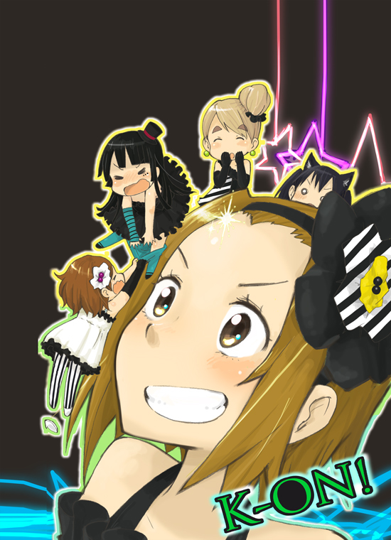 00s5girlsaqua pantyhoseblack eyesblack hairblunt bangsbrown hairchibiclothes pulldresselbow glovesfacepaintfingerless glovesforeheadgloveshathime cutho-kago tea timelens flarelong hairmini hatmini top hatmultiple girlsneon lightspantyhosepantyhose pullshoessingle shoestar (symbol)striped clothesstriped pantyhosetomboytop hatvertical-striped clothesvertical-striped pantyhose