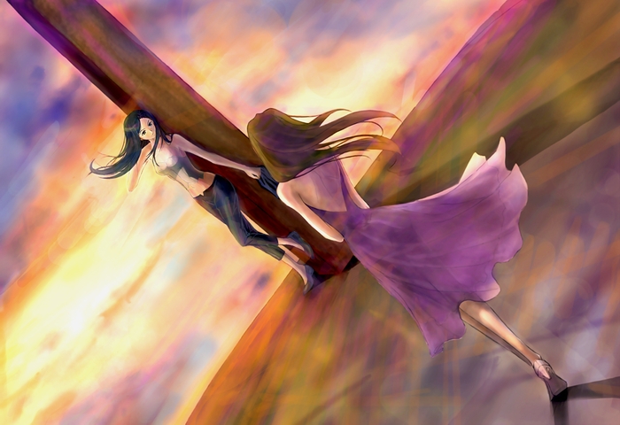 00s2girlsbackless dressbackless outfitbare backblue eyesblue hairbrown hairdresslong hairlooking at anothermultiple girlswind